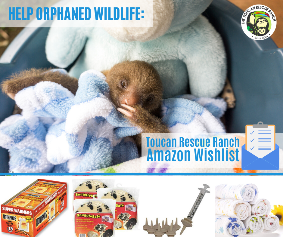 Many of the products you will find on this list are either too expensive in Costa Rica or too difficult to purchase. We really appreciate your help and generosity when purchasing items from this list! In our wish list, you will find fuzzy blankets you can donate to help keep orphaned baby animals warm, syringes to feed animals formula, bird feed, animal enrichment toys to animals happy and busy, administrative items that help managers and teams be more organized, trail cameras for research, incubators to keep animals warm, scales to weigh animals in our wildlife clinic, and many other items that really help Toucan Rescue Ranch ensure quality care!
